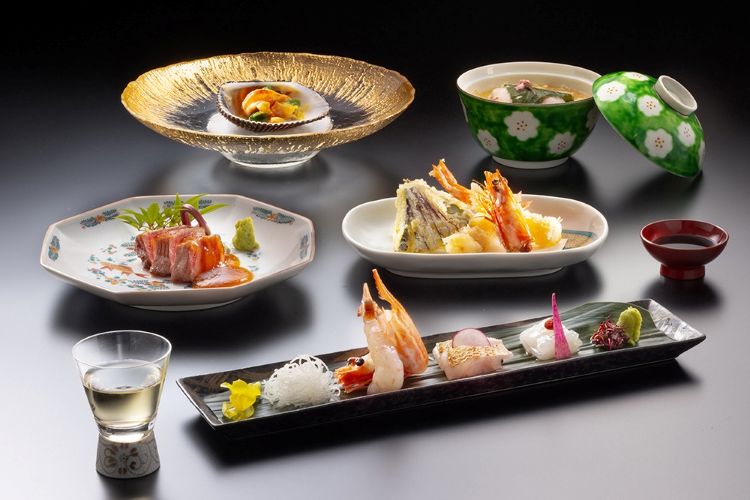 館内には加賀の山海の幸をさまざまなスタイルで楽しんでいただけるレストランを揃えています。伝統を感じる和の空間から、シェフのパフォーマンスを間近で体験できるオープンキッチンまで、趣向を凝らした料理と空間でお客様をお迎えしています。