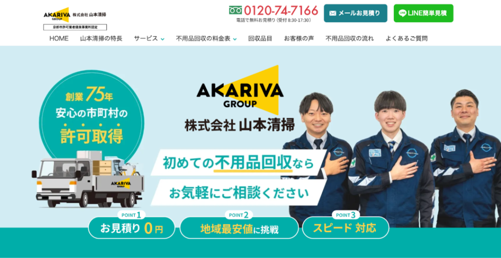山本清掃は、京都市公認の許可業者として、京都の地域特性に合わせた丁寧な不用品回収サービスを提供しています。